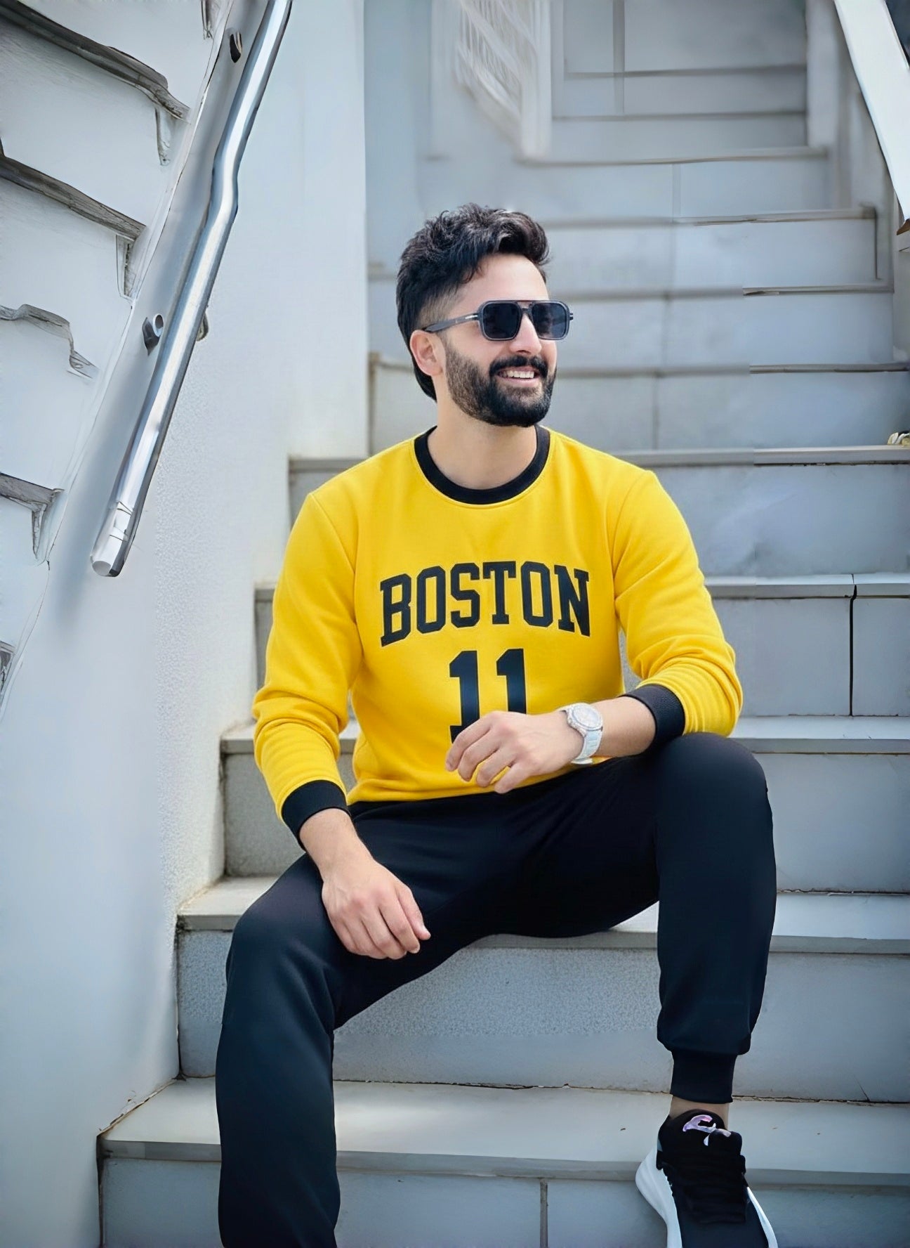 Unisex Fleece Printed Round Neck Sweatshirt Track Suit 2 Pcs